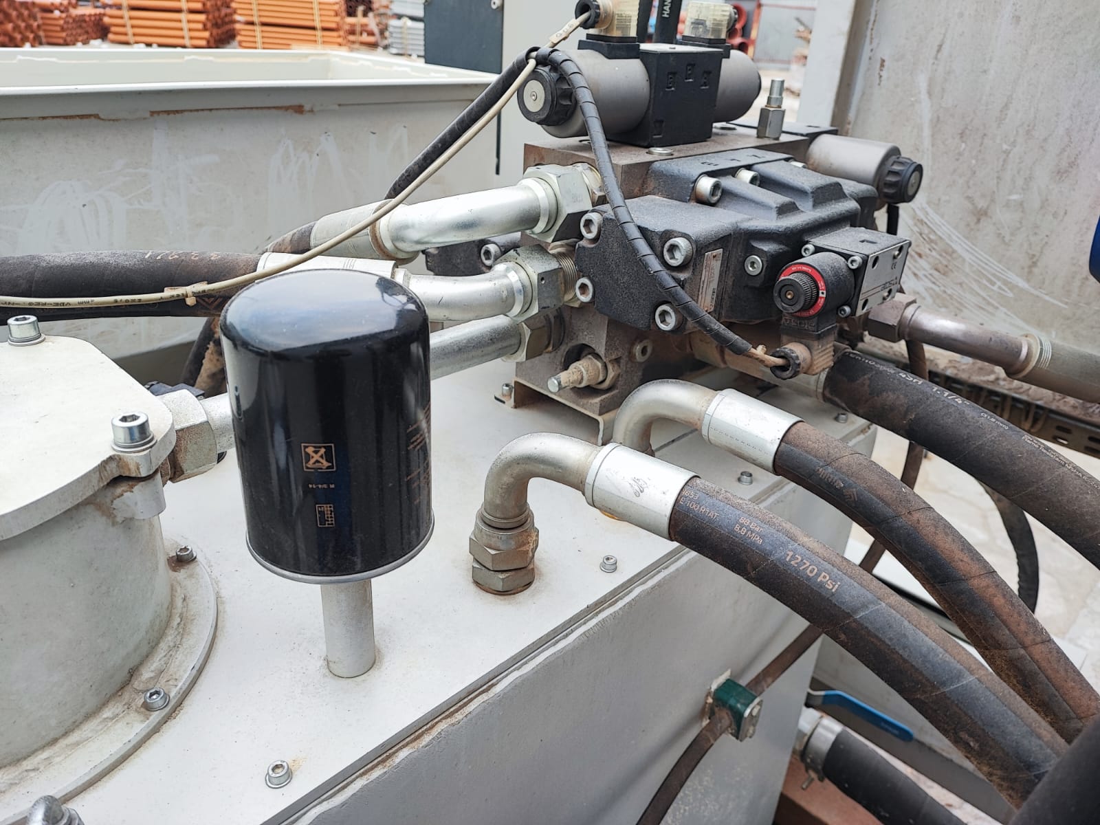 Stroj je ve velmi dobré kondici po výměně pracovních nástrojů, a přetěsnění hydraulických válců připraven do provozu.